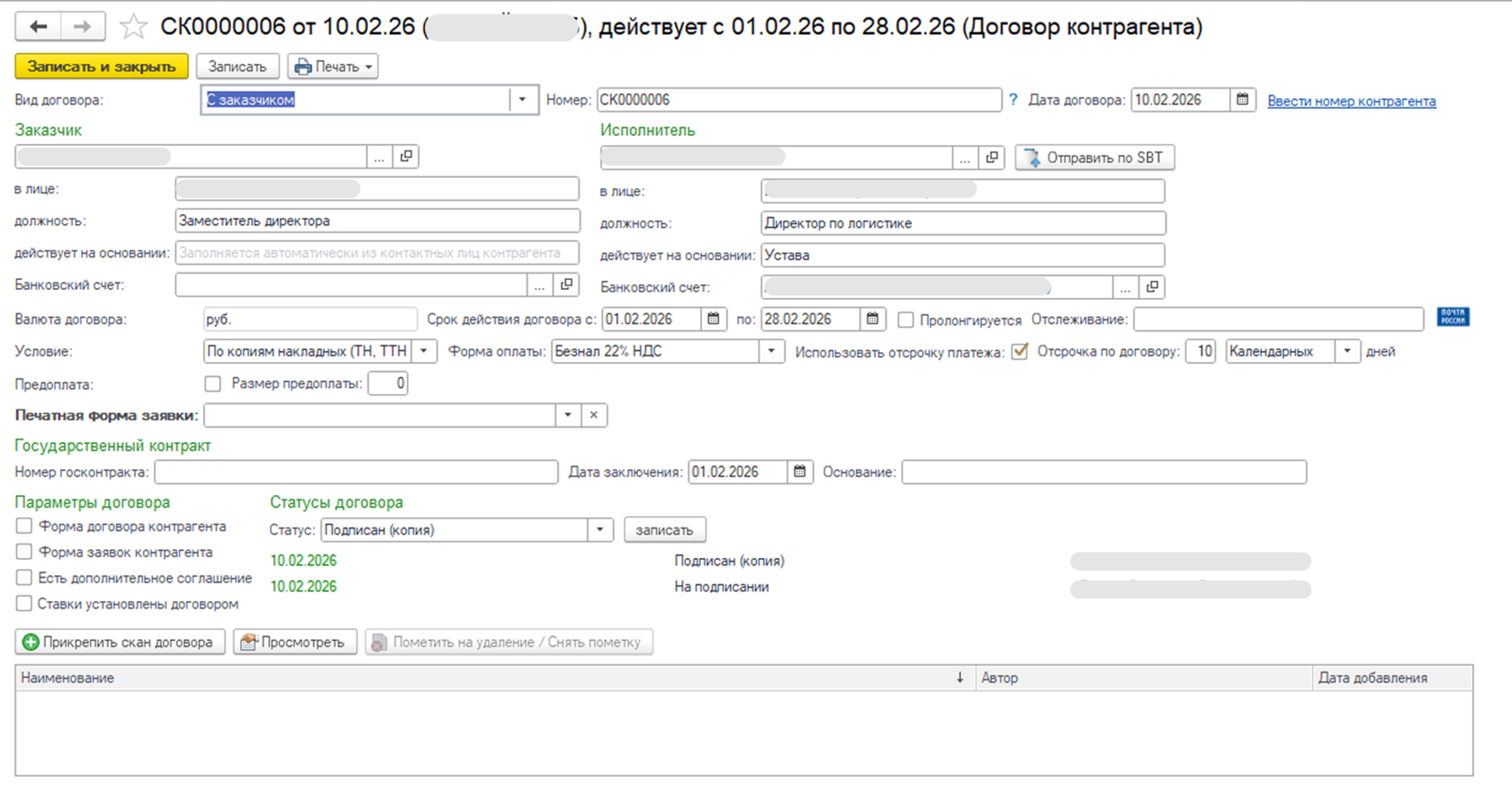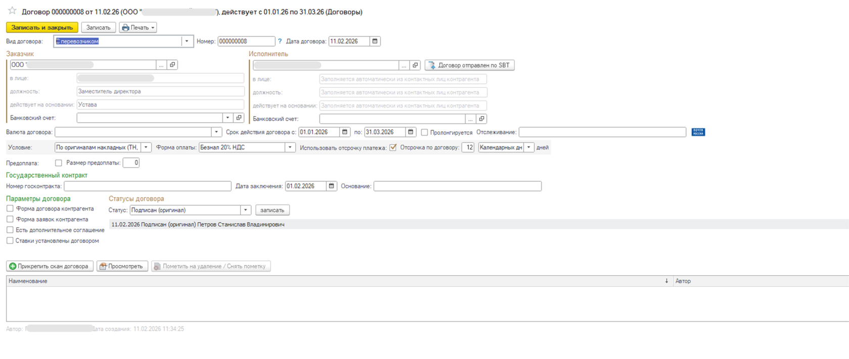 | | | - Поработали над формой карточки договора. Привели в соответствие журналы и вид документа в Умной Логистике Транс и в Умной Логистике Карго. Добавили реквизиты: форму и условия оплаты, отсрочку, количество и тип дней, предоплату. Вот так теперь это выглядит в Транс: