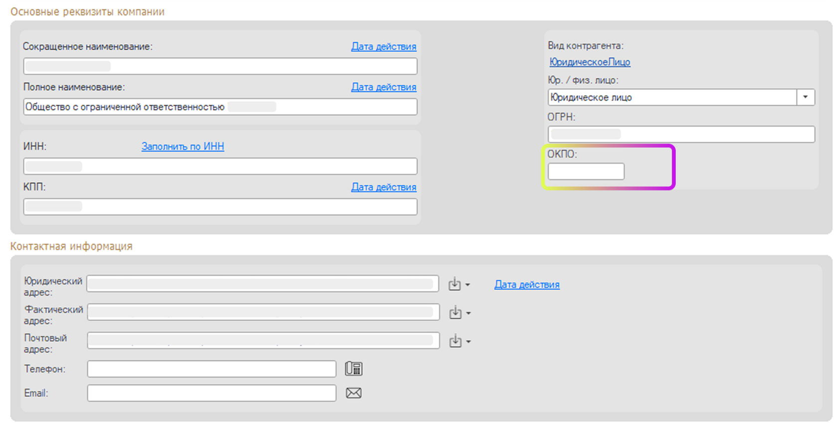 - В карточке контрагента в Карго появилось новое поле — ОКПО (Общероссийский классификатор предприятий и организаций). Храним полный набор реквизитов контрагента в системе и упрощаем работу с бухгалтерскими и юридическими данными.