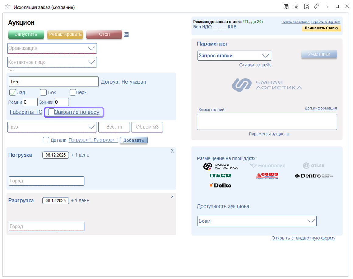 Перевозчики могут делить заказ на несколько заявок, но в рамках установленного веса — более честная работа аукциона и распределения заявок.