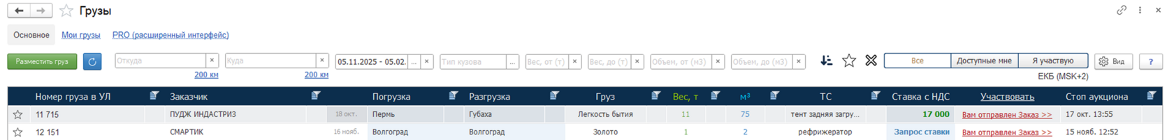 - Доработали отображение аукционов, которые запускаются по итогам тендера. Теперь такие аукционы попадают в журнал «Мои грузы».