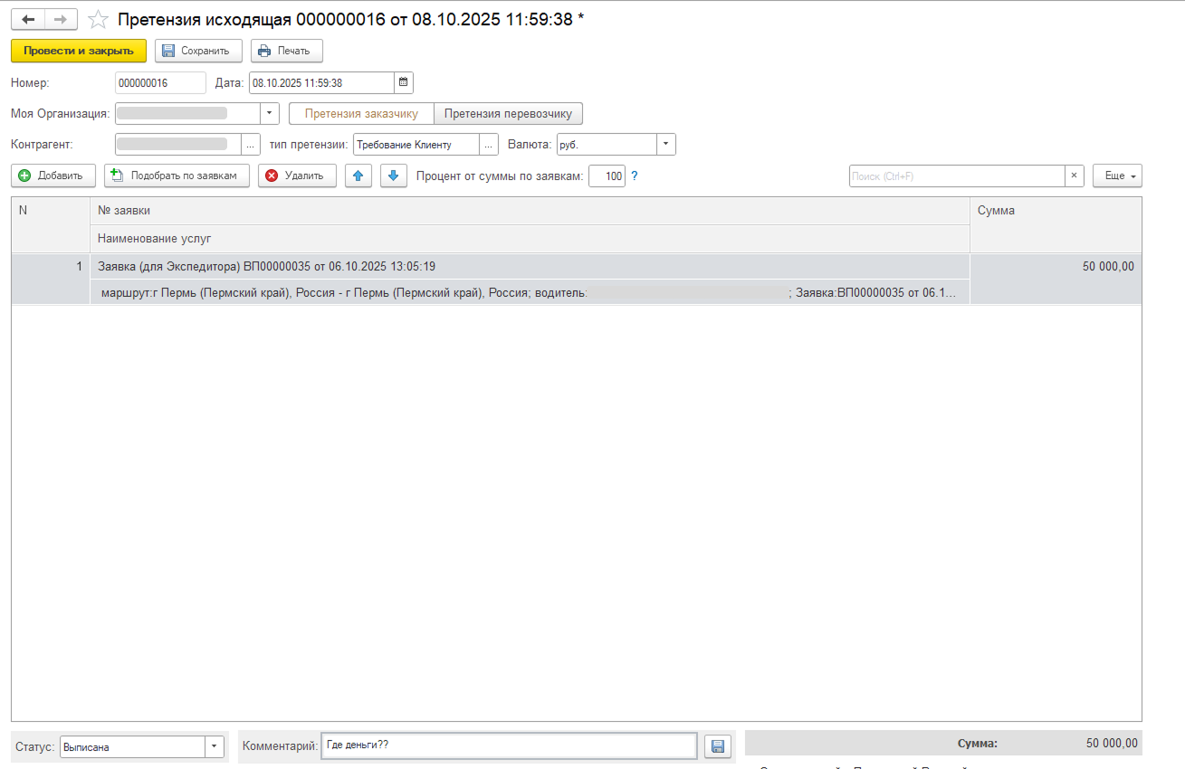 Обновили работу с претензиями в Трансе — теперь это полноценный инструмент для ведения входящих и исходящих претензий. | | | | В журнале претензий можно выбирать или создавать тип претензии: досудебная, информационное письмо, уведомление и другие. Суммы подтягиваются автоматически из заявок. Состояние документов удобно отследить по статусам. | | | | Если нужно, отправьте претензию по почте прямо из системы. | | | | Зачем сделали?