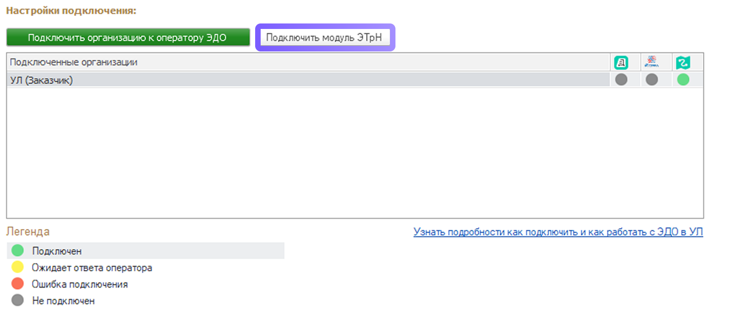 Чтобы начать работу, нажмите на кнопку «Подключить модуль ЭТрН» — откроется мастер настройки. | | | | Что делать дальше: