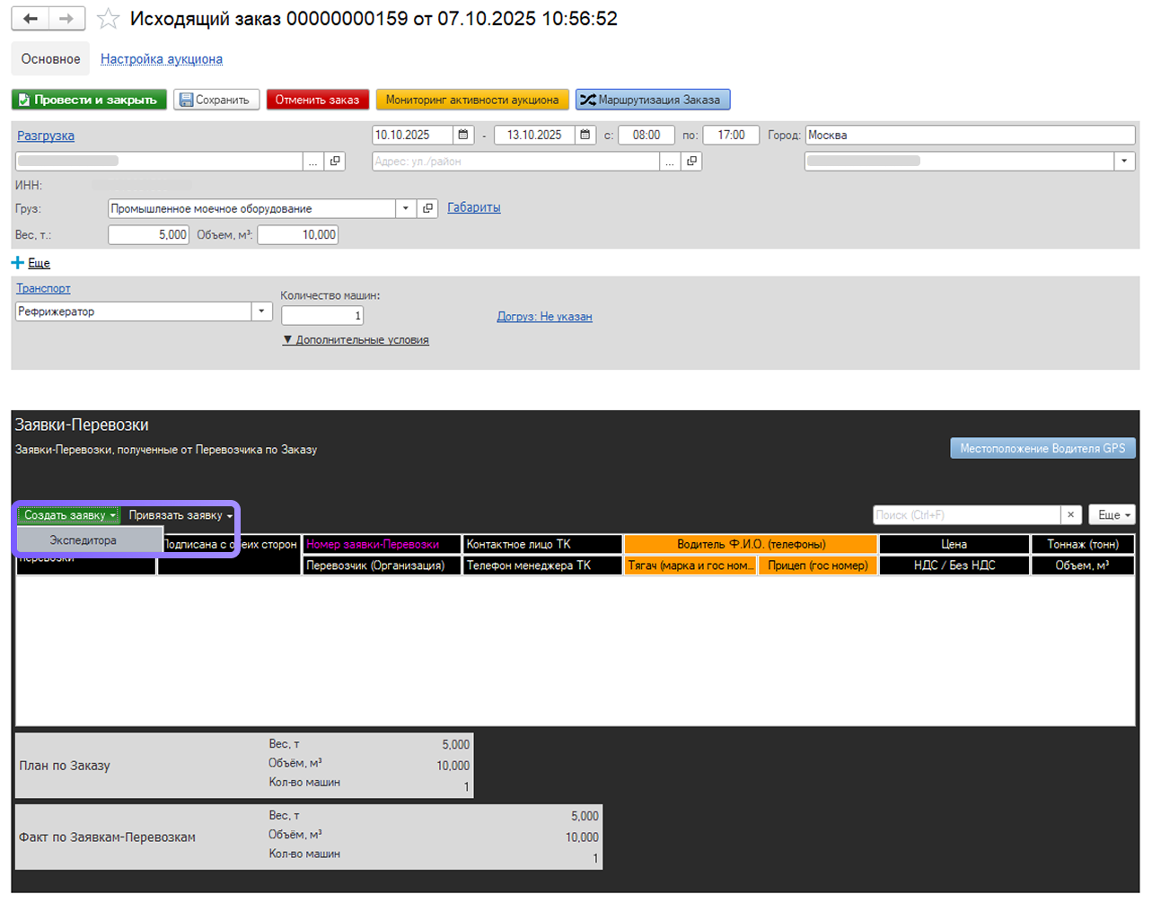 Теперь можно создавать заявку на основе исходящего заказа — работает почти так же, как формирование заявки по данным входящего заказа.
