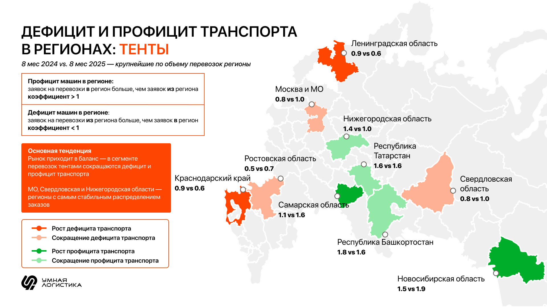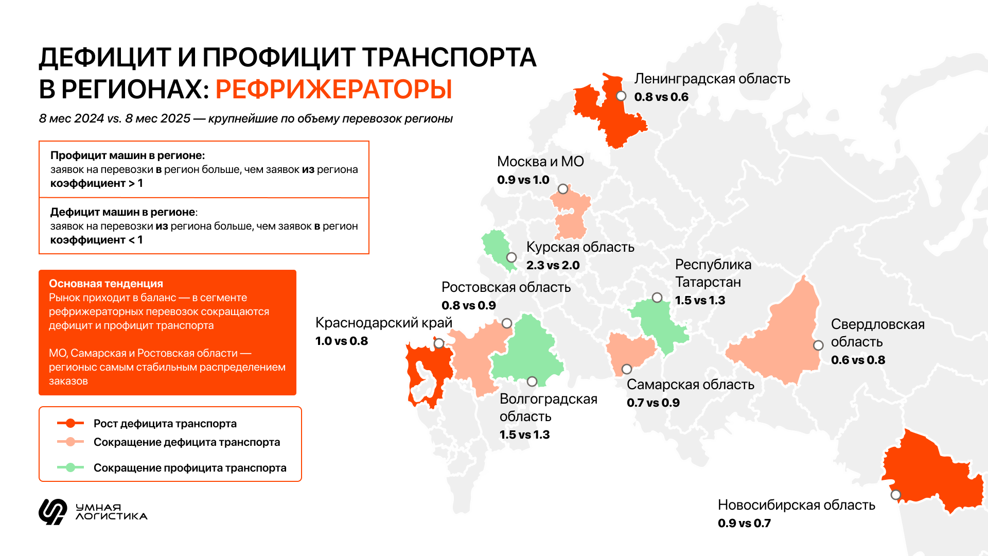 Анализ дефицита и профицита транспорта показывает, где на рынке сохраняется давление на ставки, а где, наоборот, есть условия для их роста.