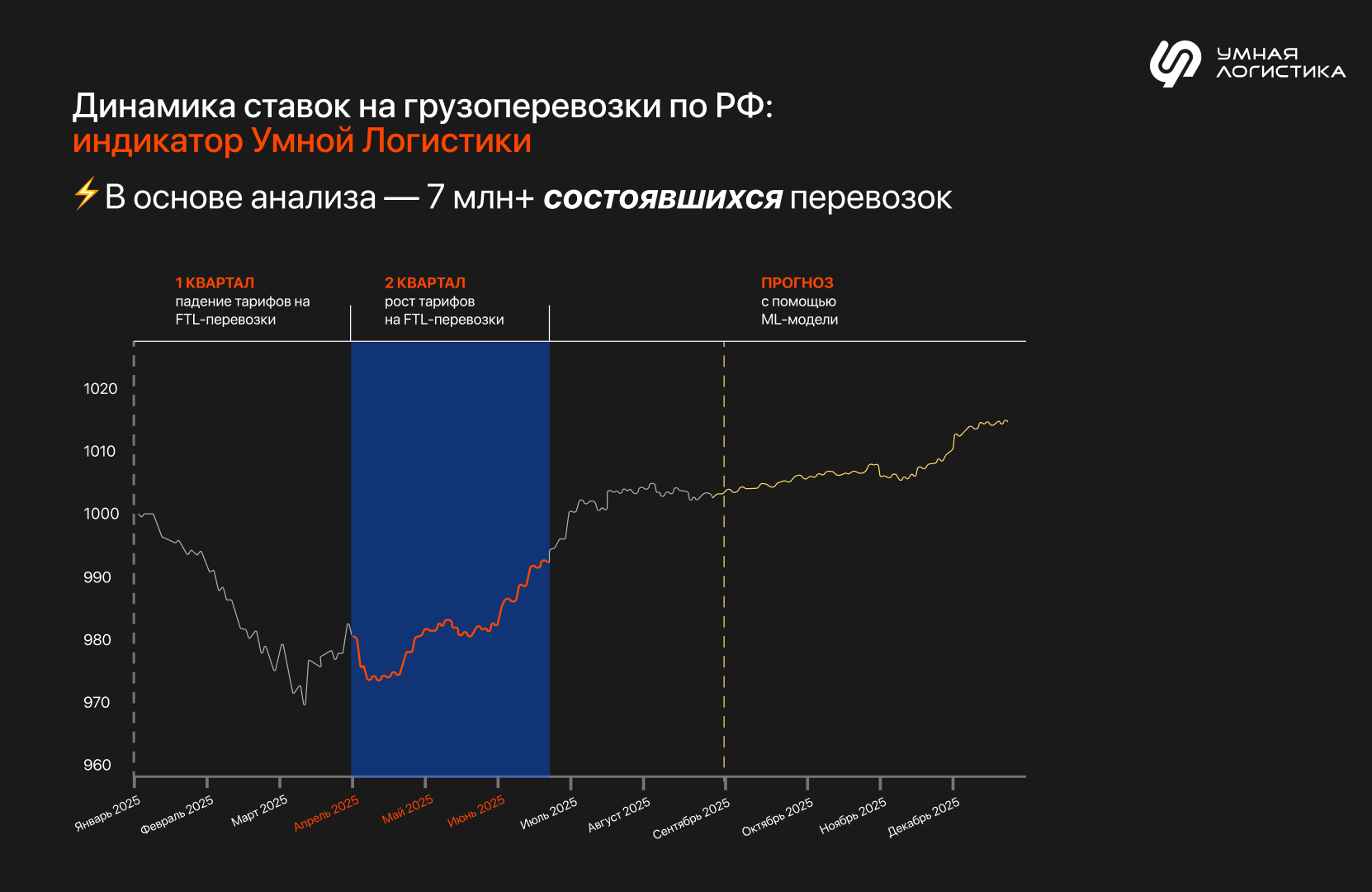 С инструментом от Умной Логистики ситуация меняется. «РегионТранс» задает параметры: маршрут, тип транспорта и период. Система анализирует завершенные перевозки с подходящими критериями и показывает динамику ставок: в мае ~ 145 500 ₽, в июне — 141 900 ₽. Теперь менеджер закладывает реальную рыночную цену, а руководитель видит, откуда берутся цифры. | | | | Лидеры рынка уже используют Big Data в Умной Логистике: кейс компании «Эфес» | | | ПотребностьГоловной офис компании «Эфес» в Европе управляет перевозками по всей России. Чтобы обосновать бюджет и оценить рентабельность, нужны достоверные данные о рыночных ставках по регионам и направлениям.РешениеBig Data в Умной Логистике объединяет данные по миллионам реально завершенных перевозок — с указанием маршрута, типа транспорта, периода, веса и объема груза.Благодаря этому «Эфес» получает актуальные рыночные ставки по каждому региону и направлению, видит сезонные колебания и может прогнозировать стоимость перевозок в бюджете на квартал вперед.Даже находясь за границей, аналитики компании строят отчеты по нужным маршрутам — с точностью до конкретного плеча перевозки.РезультатКомпания понимает, сколько реально стоят перевозки по регионам, и может уверенно планировать расходы. Все расчеты — на данных из реальных рейсов, без догадок и предположений.Хотите принимать взвешенные решения, которые помогут зарабатывать больше? Приходите на бесплатную экскурсию по Умной Логистике — расскажем, как Big Data работает на практике. Скачивайте полный обзор рынка в нашем телеграм-канале! | | | |