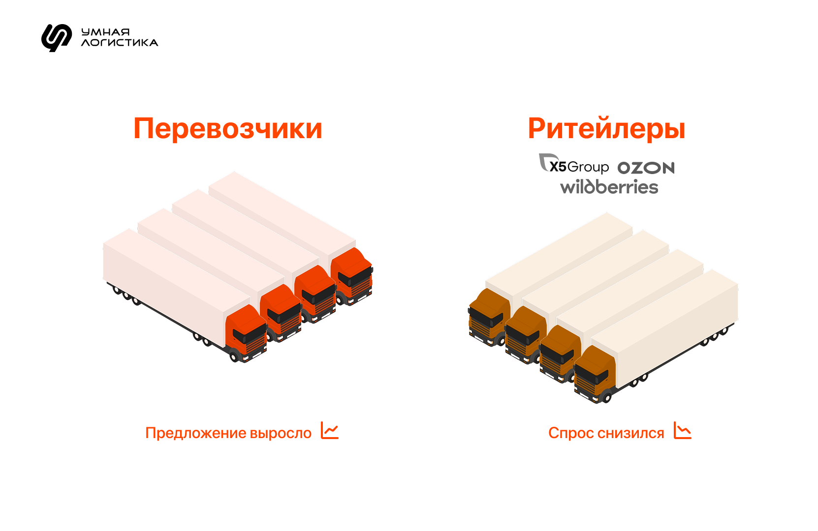 При профиците транспорта заказов меньше, а машин больше: перевозчики конкурируют за грузы, и ставки снижаются. Когда же машин не хватает — формируется дефицит. Тогда уже грузовладельцы вынуждены предлагать более высокие ставки, чтобы обеспечить доставку.