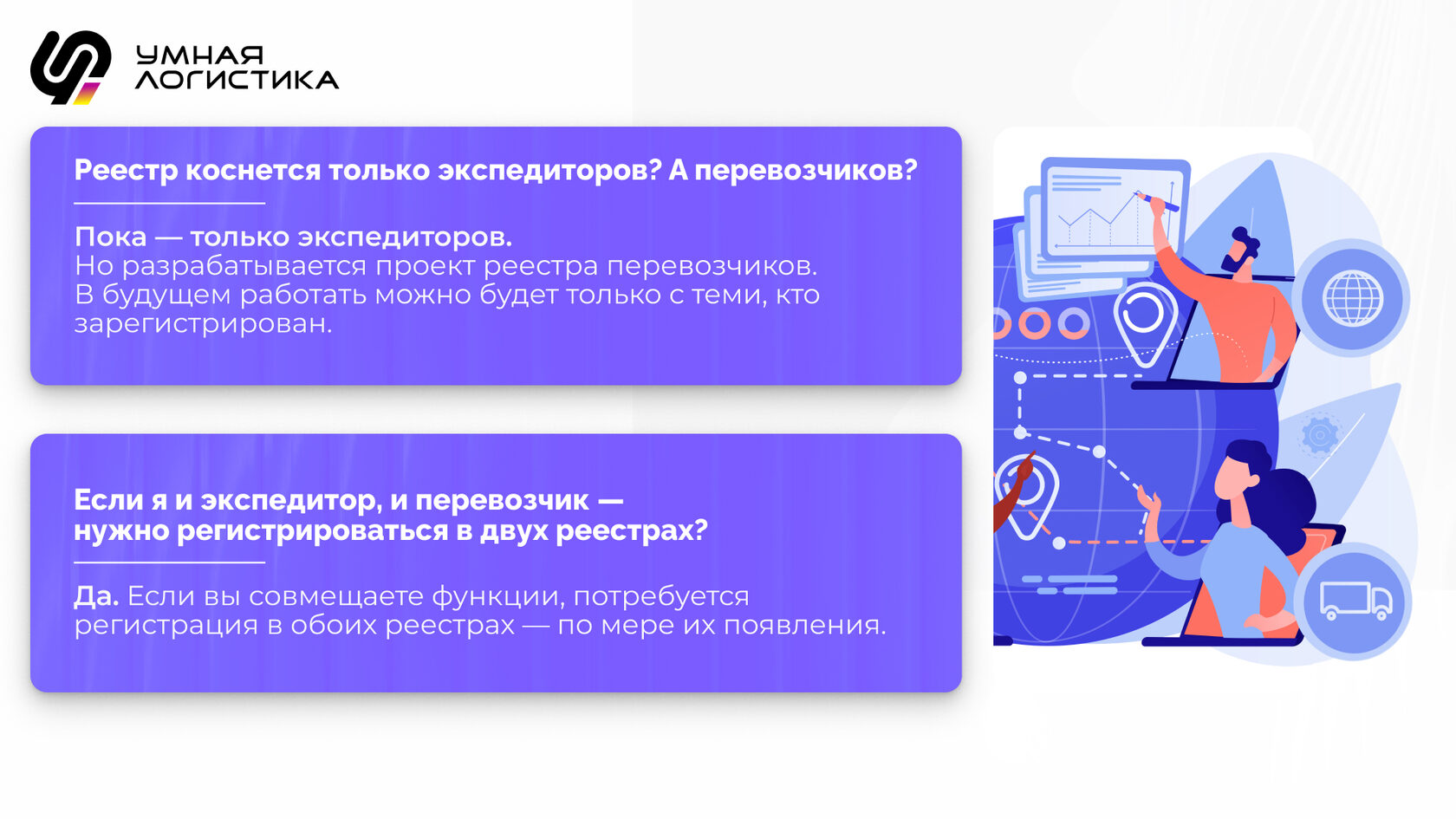 Если у компании в ОКВЭД указана экспедиторская деятельность, но фактически она ею не занимается — не нужно регистрироваться в реестре. | | | | Шаг 2: Подготовьтесь к обязательному реестру экспедиторов с 1 марта 2026 года | | | Реестр экспедиторов — часть системы ГосЛог. Без регистрации в нем нельзя будет работать, иначе — штраф. Предварительно это от 100 до 300 тысяч рублей как минимум. В реестр попадут не все — нужно соблюсти требования. Таким образом государство рассчитывает очистить рынок от недобросовестных игроков. | | | Проверить соответствие требованиям:- нет долгов по налогам;