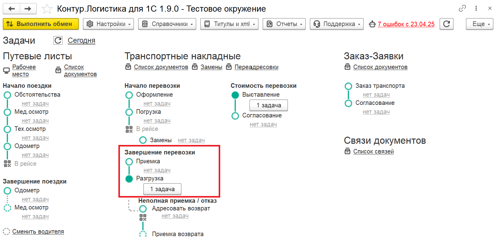- После подписания последнего титула система отмечает перевозку как завершенную.