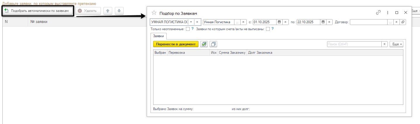 Система сама предложит прикрепить к претензии подходящие заявки — вам не нужно искать их вручную.