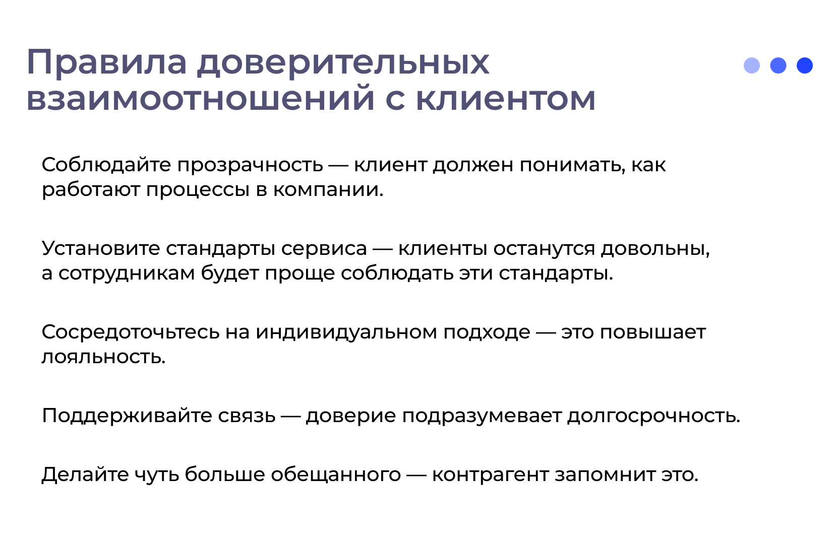 Чтобы избежать такого сценария и не потерять клиента, нужно разработать правила взаимодействия. Вот несколько рекомендаций: