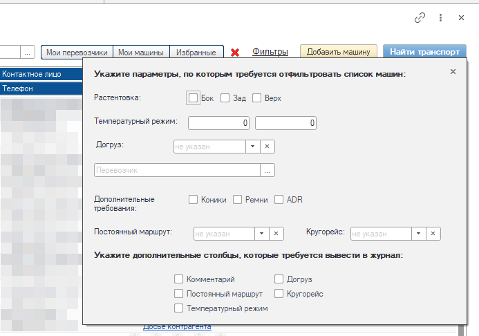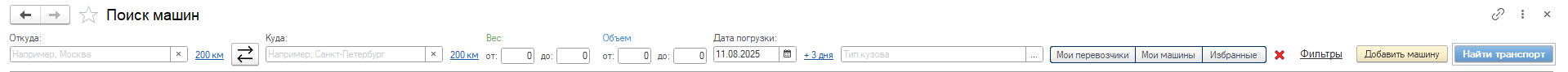 Если хотите видеть в списке только своих перевозчиков, машины и избранные ТС — установите подходящие фильтры.