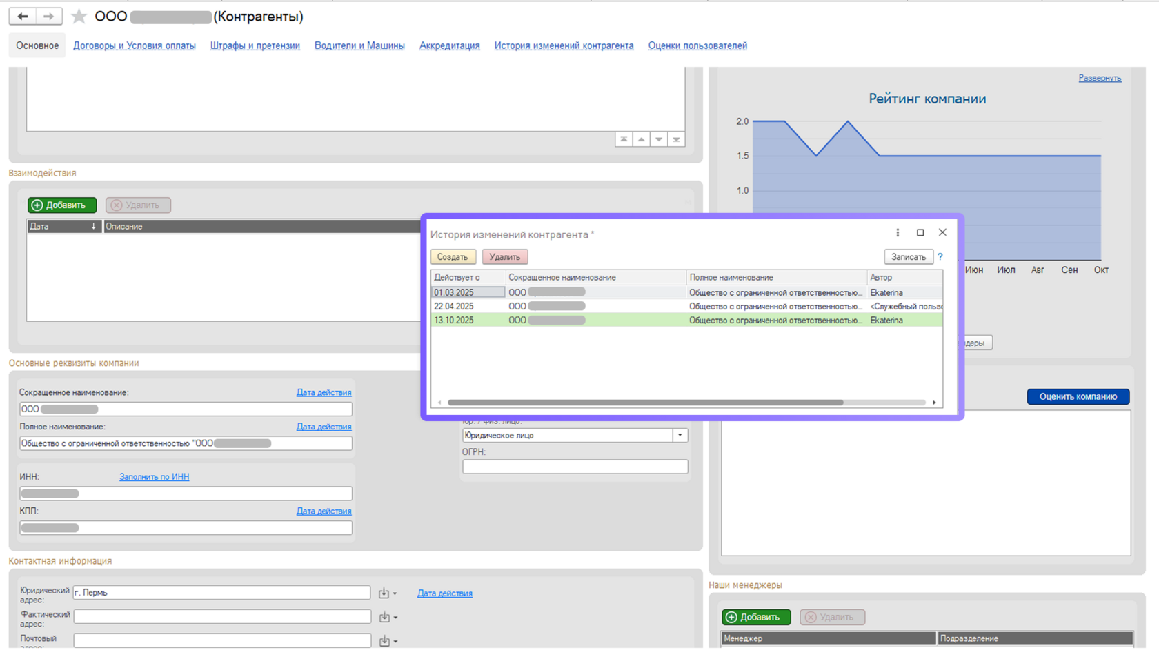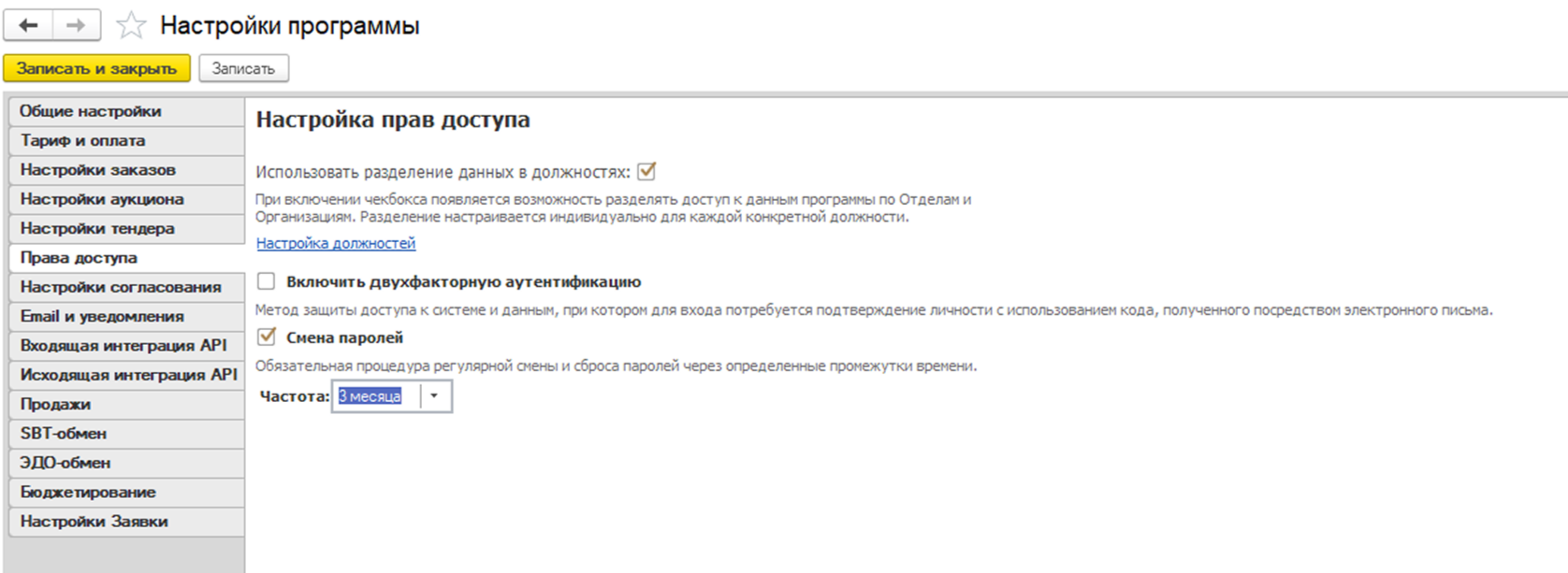 Не забудьте нажать «Записать» после внесения изменений! | | | В настройках добавлено новое право доступа «Дата действия» — оно регулирует, кто может редактировать историю реквизитов.По умолчанию редактирование доступно для:- руководителя отдела логистики;