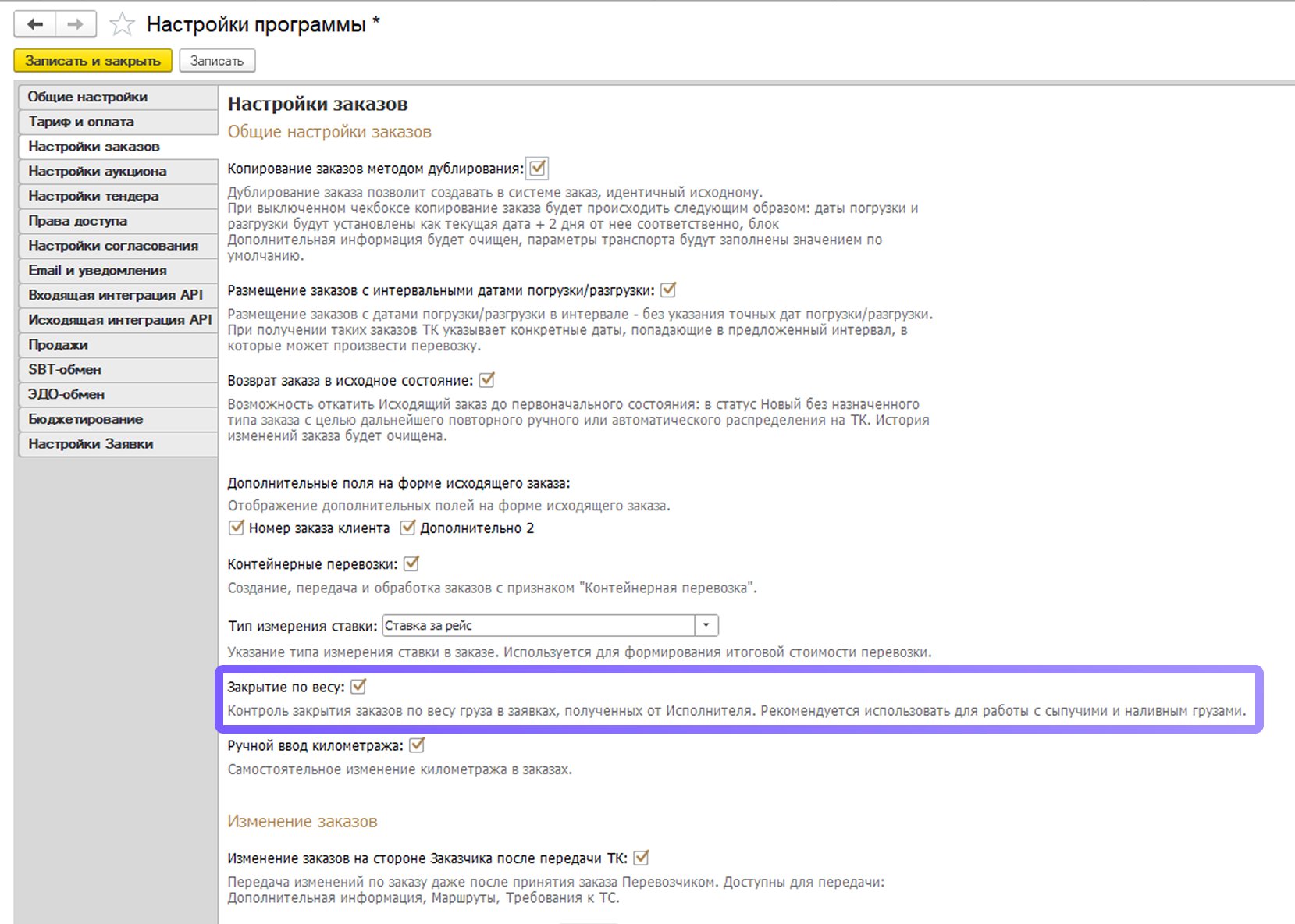 Функцию добавили, чтобы проще было устанавливать ставки в аукционах. Система сама предлагает сумму, которая основана на данных миллионов завершенных рейсов. Это помогает принимать обоснованные решения без траты времени на расчеты вручную. Рекомендованные ставки помогают увидеть реальную картину рыночных тарифов и держать цены на конкурентном уровне без потери прибыли. | | | Закрытие заказов по вывезенным объемам груза | | | Продукт: Транс для транспортных компаний, Карго для грузовладельцевЧто сделали?Теперь заказы можно закрывать по весу, а не по количеству транспортных средств. Функцию можно подключить через вашего персонального менеджера. Активировать ее можно в параметрах заказа:- «Закрытие по весу» — в Карго;