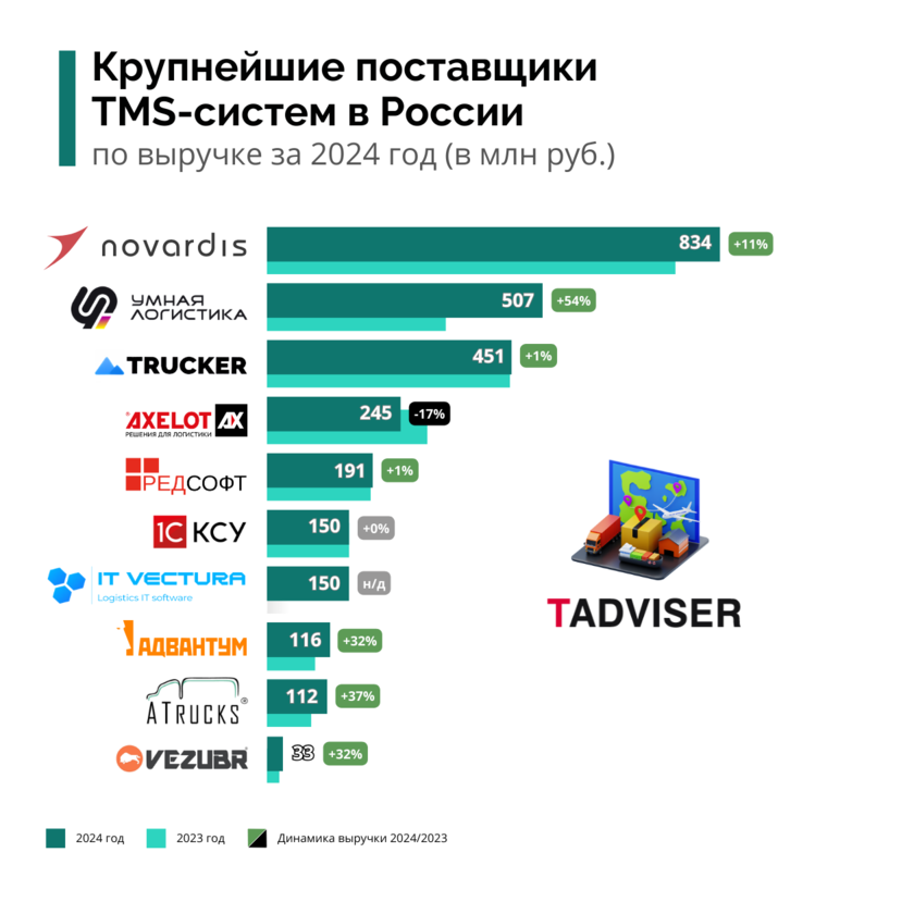 Умная Логистика вошла в ТОП-3 первого рейтинга крупнейших поставщиков TMS-систем в России, по версии TAdviser, и заняла второе место.
