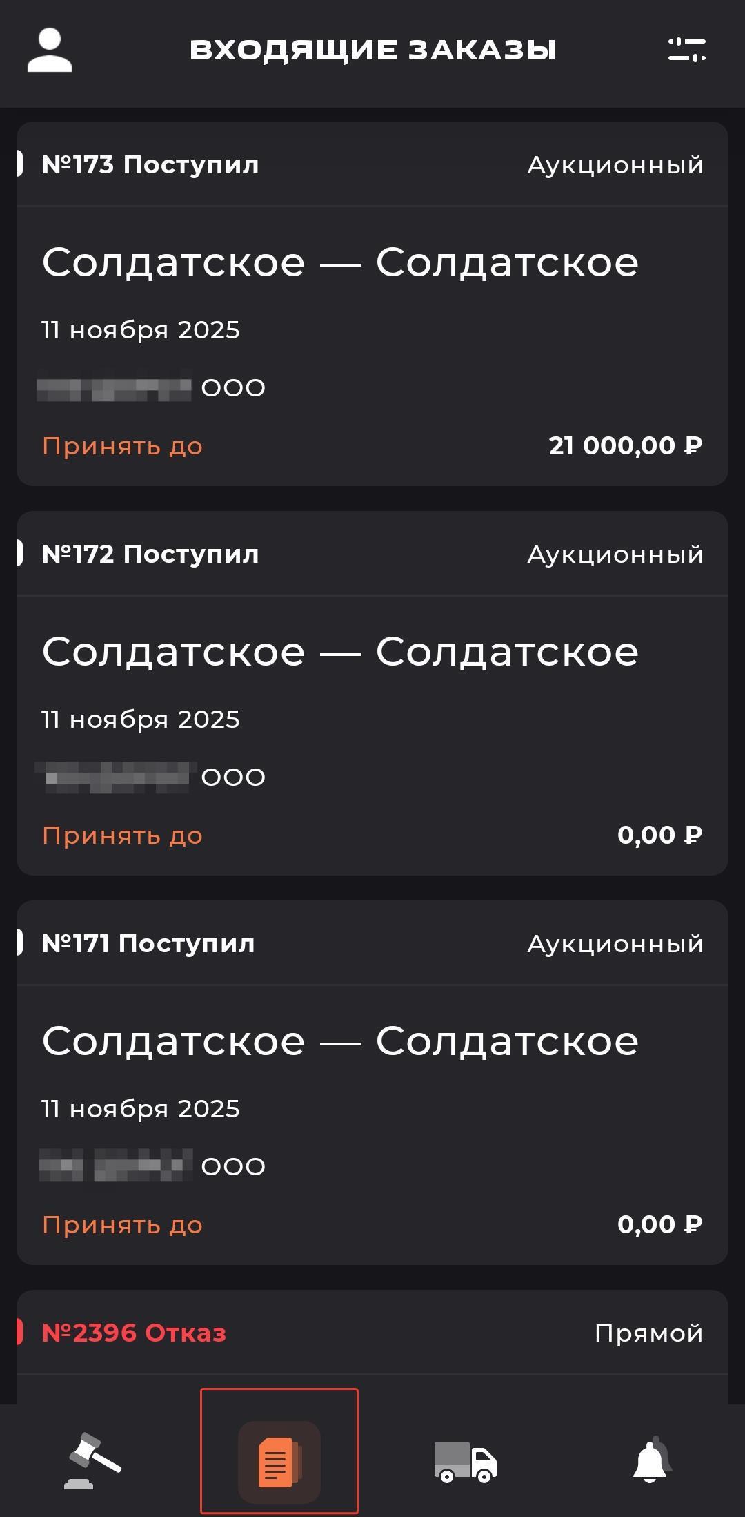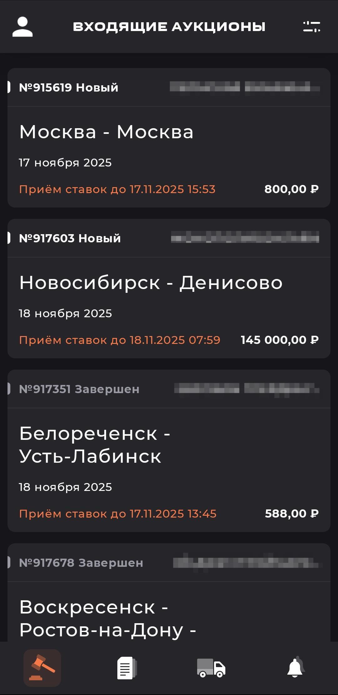 Оперативно участвуйте в аукционах от грузовладельцев, тем самым повышая свой шанс на победу.