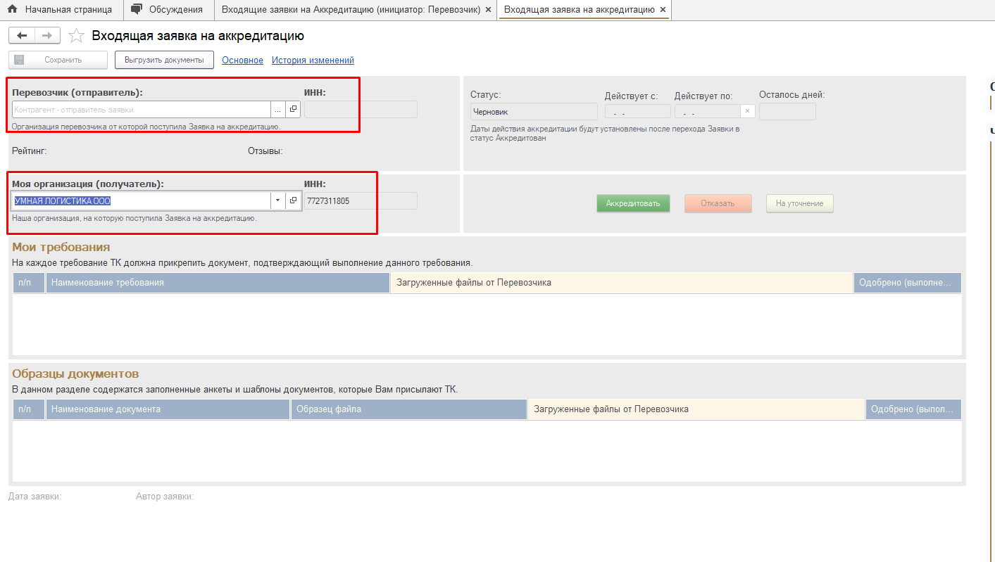 Как создавать заявки на аккредитацию и работать с входящими заявками