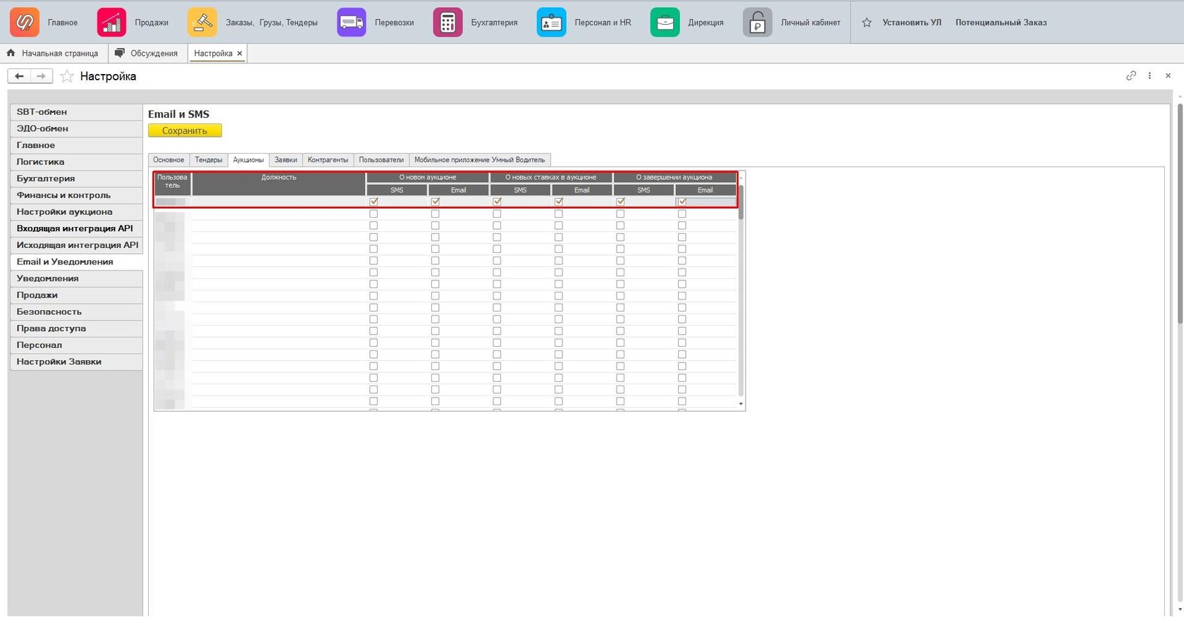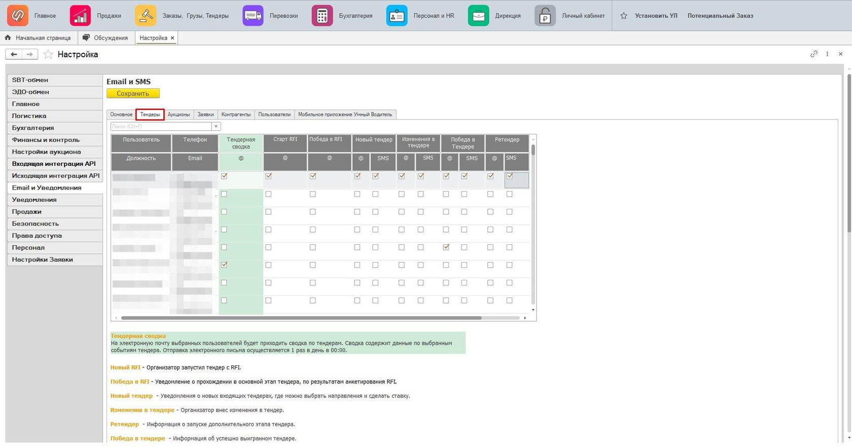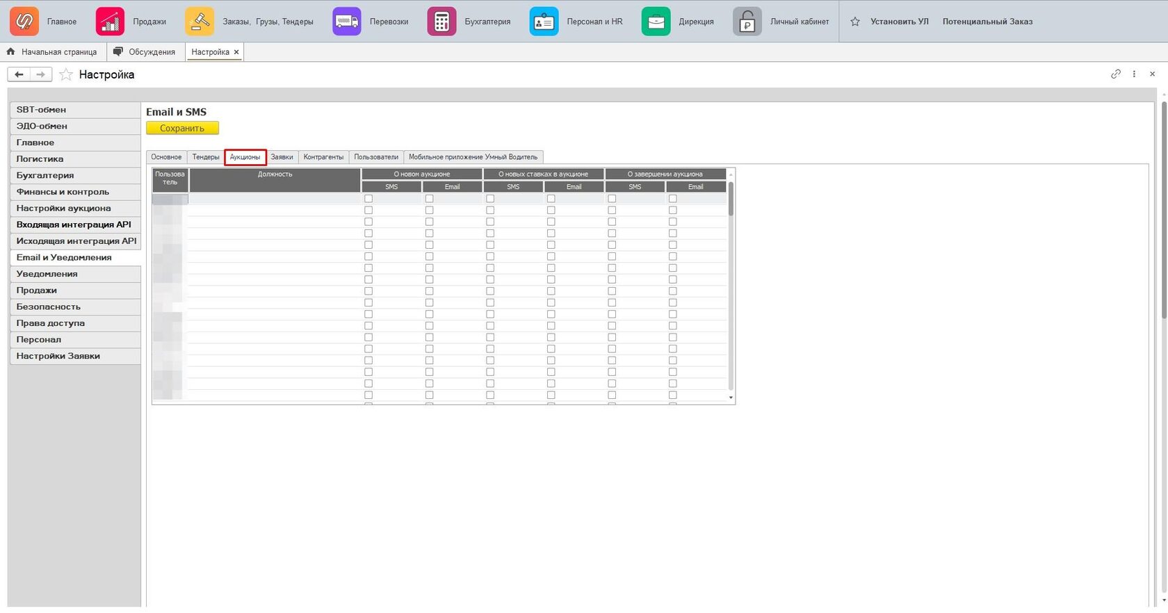 Включите уведомления по электронной почте и СМС, чтобы получать оповещения по аукционам и тендерам от грузовладельцев