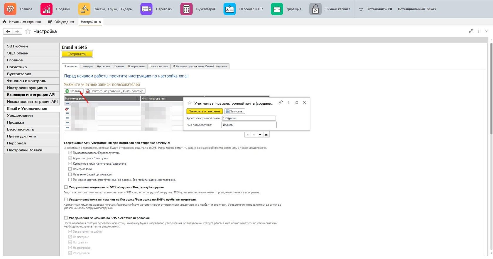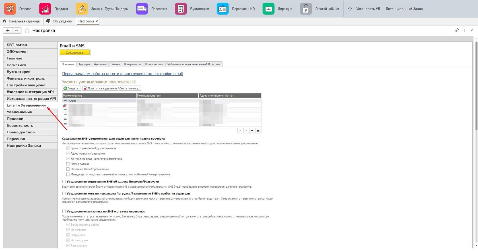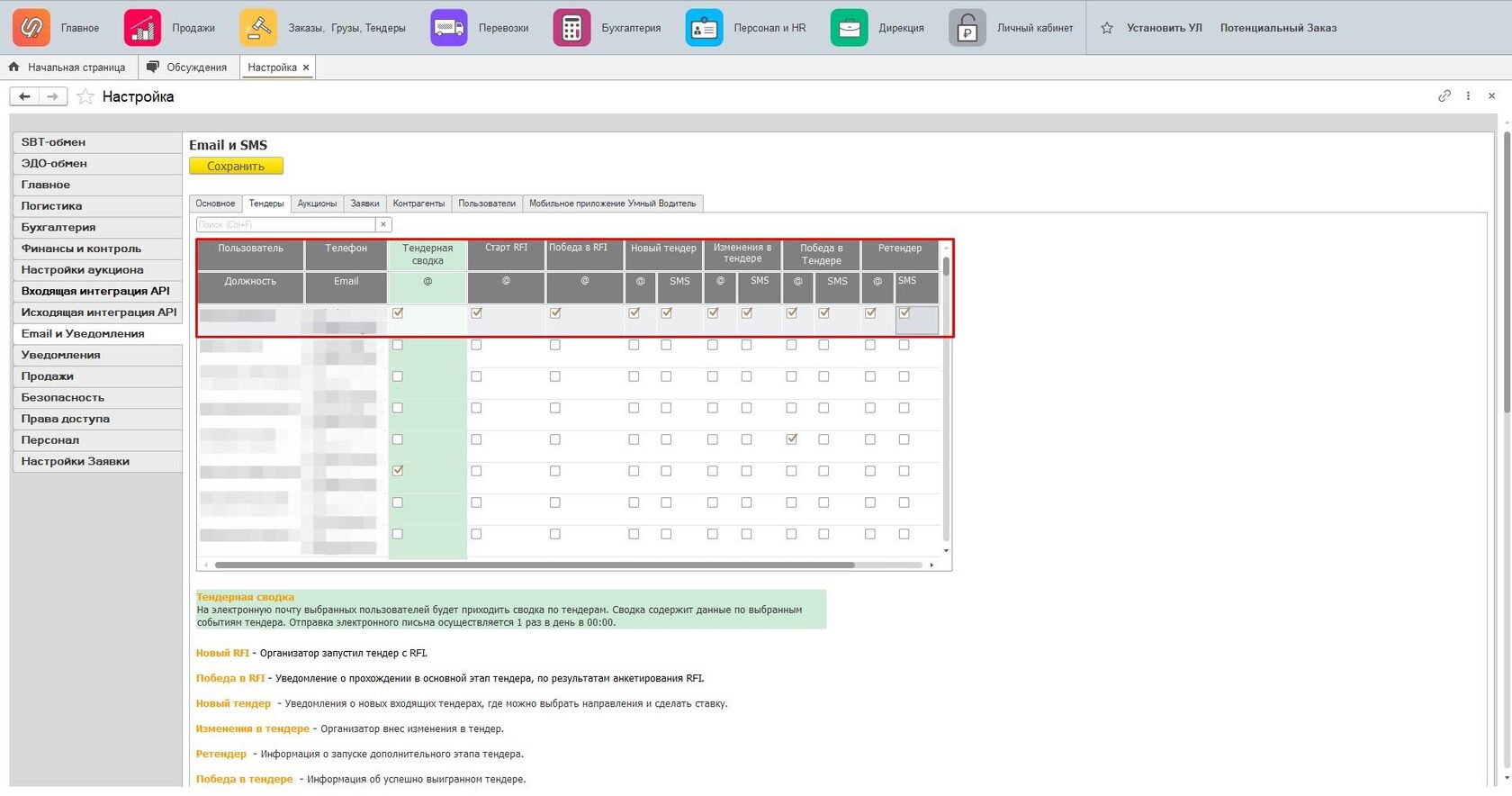 Включите уведомления по электронной почте и СМС, чтобы получать оповещения по аукционам и тендерам от грузовладельцев