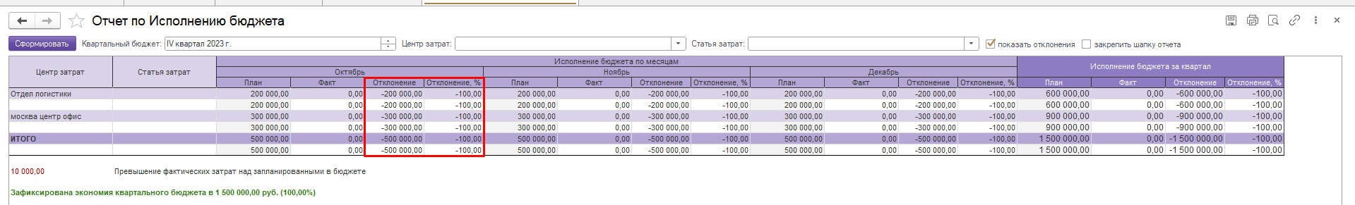 Отчет покажет отклонение от нормы, есть ли экономия или перерасход